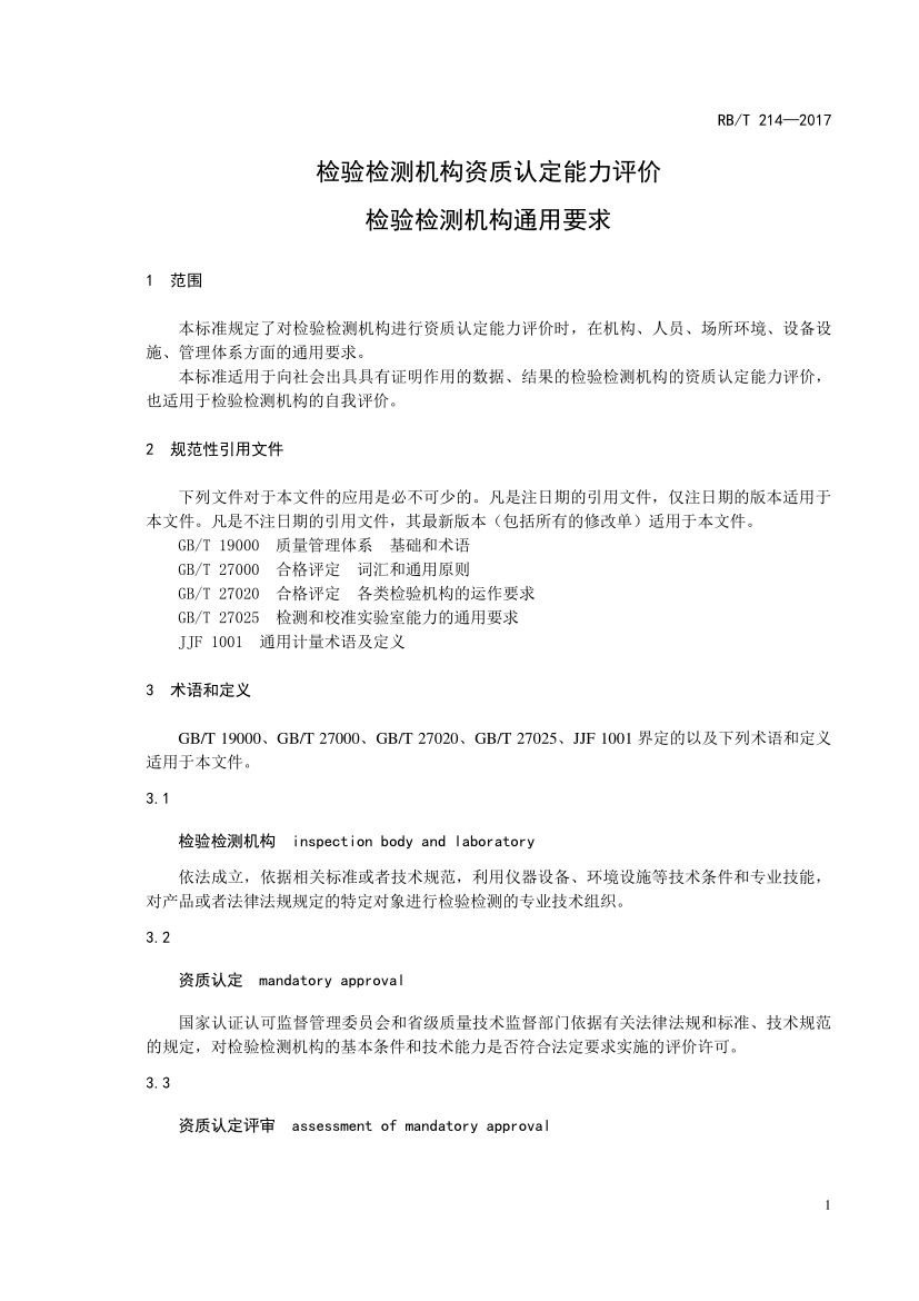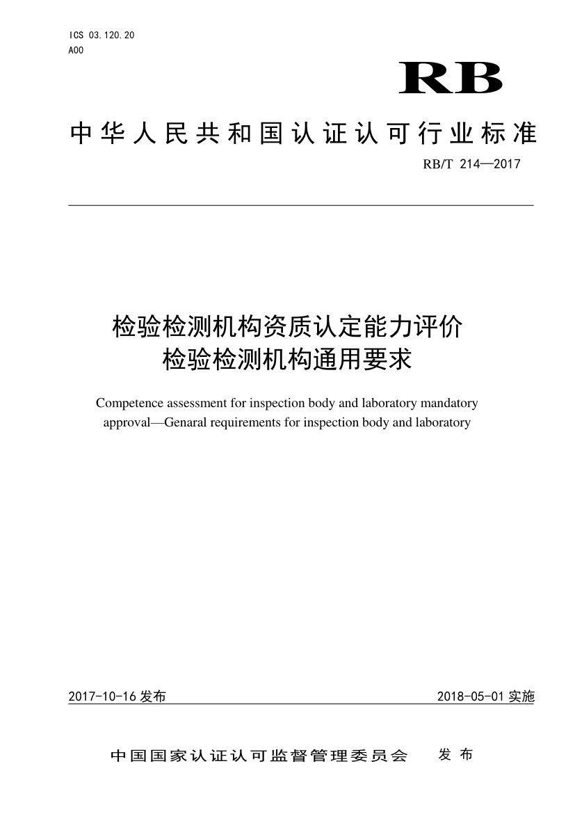 《檢驗(yàn)檢測機(jī)構(gòu)能力評價(jià) 檢驗(yàn)檢測機(jī)構(gòu)通用要求》(RBT214-2017)