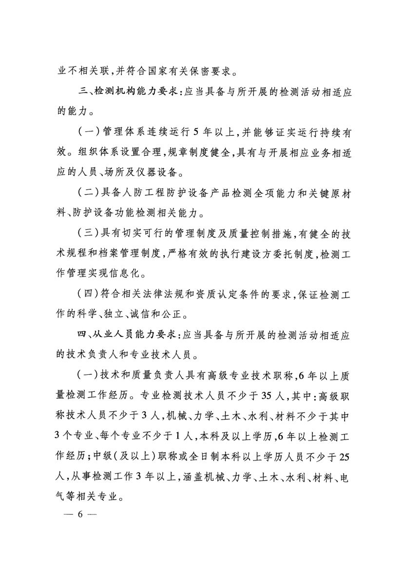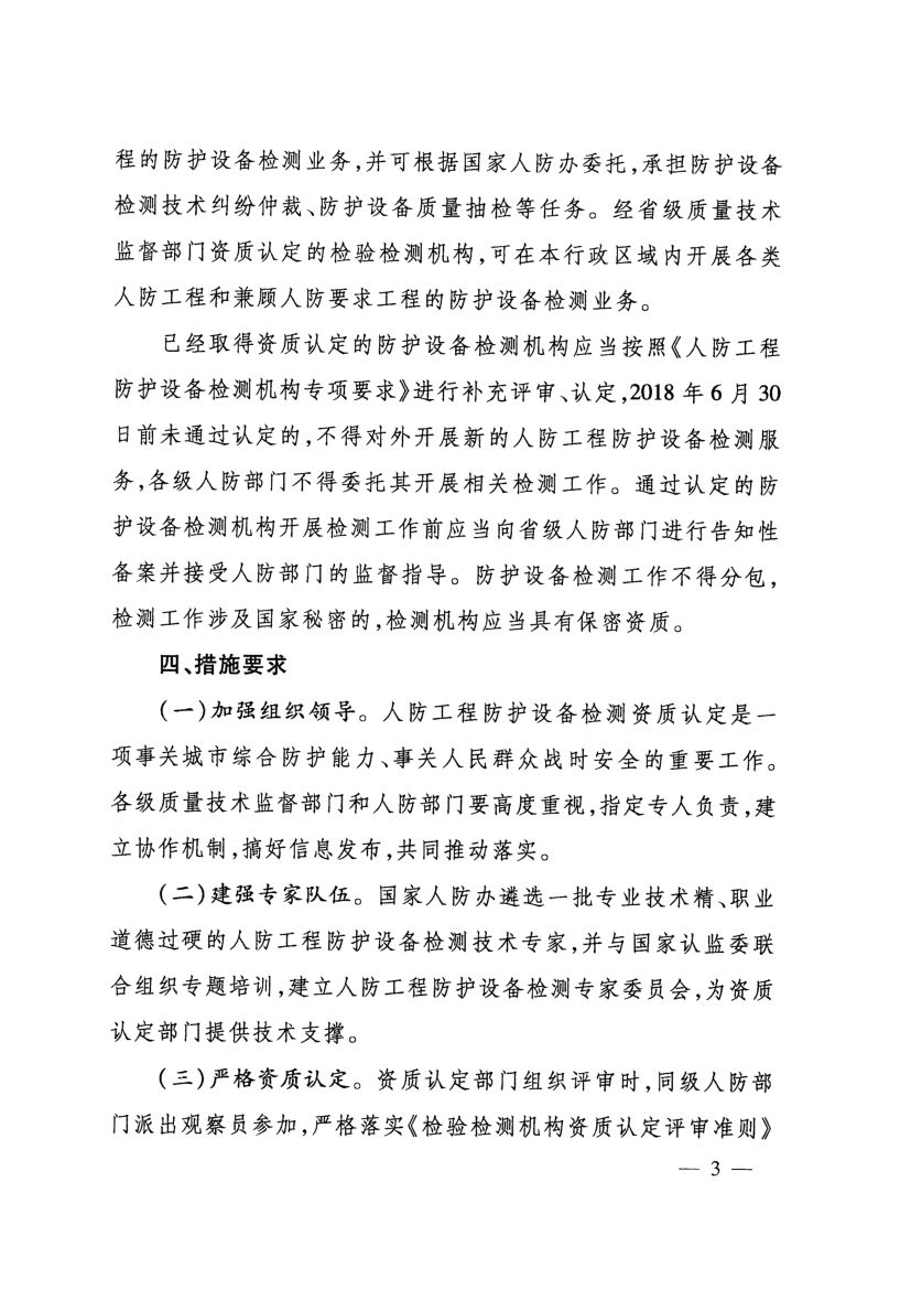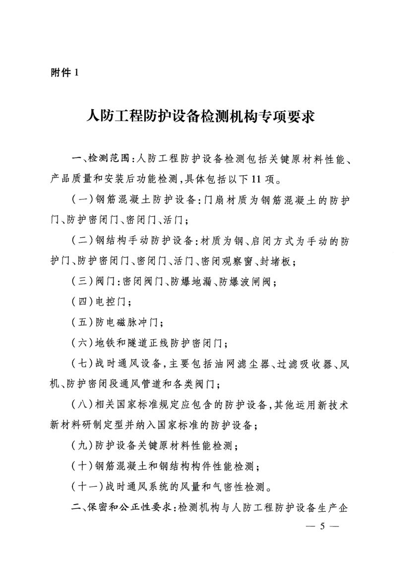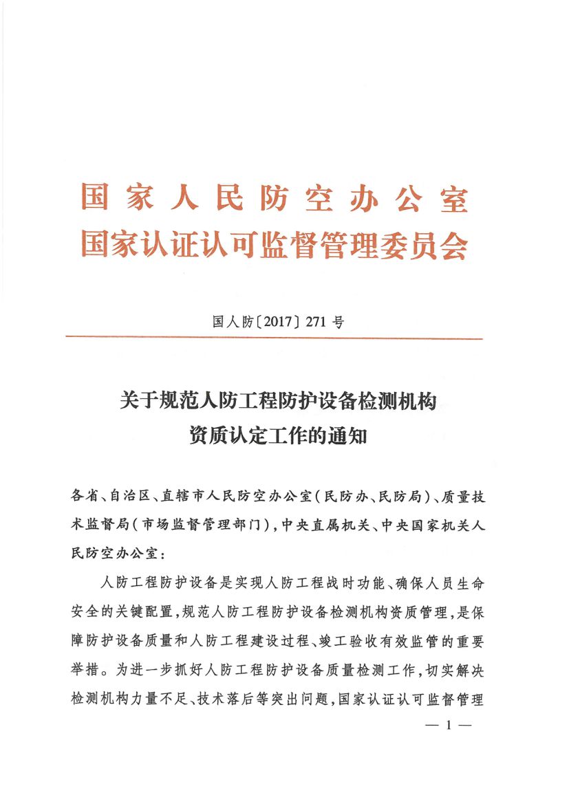 《人防工程防護設備檢測機構專項要求》(國人防〔2017〕271號)