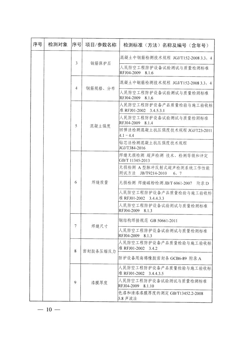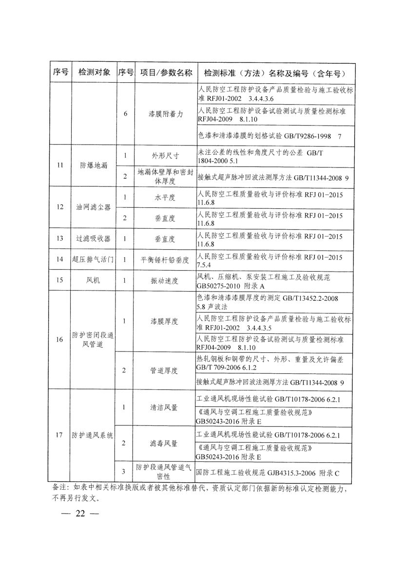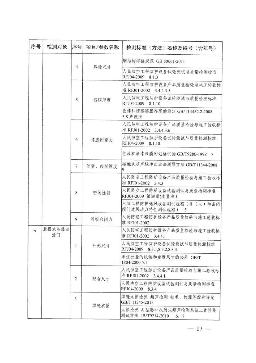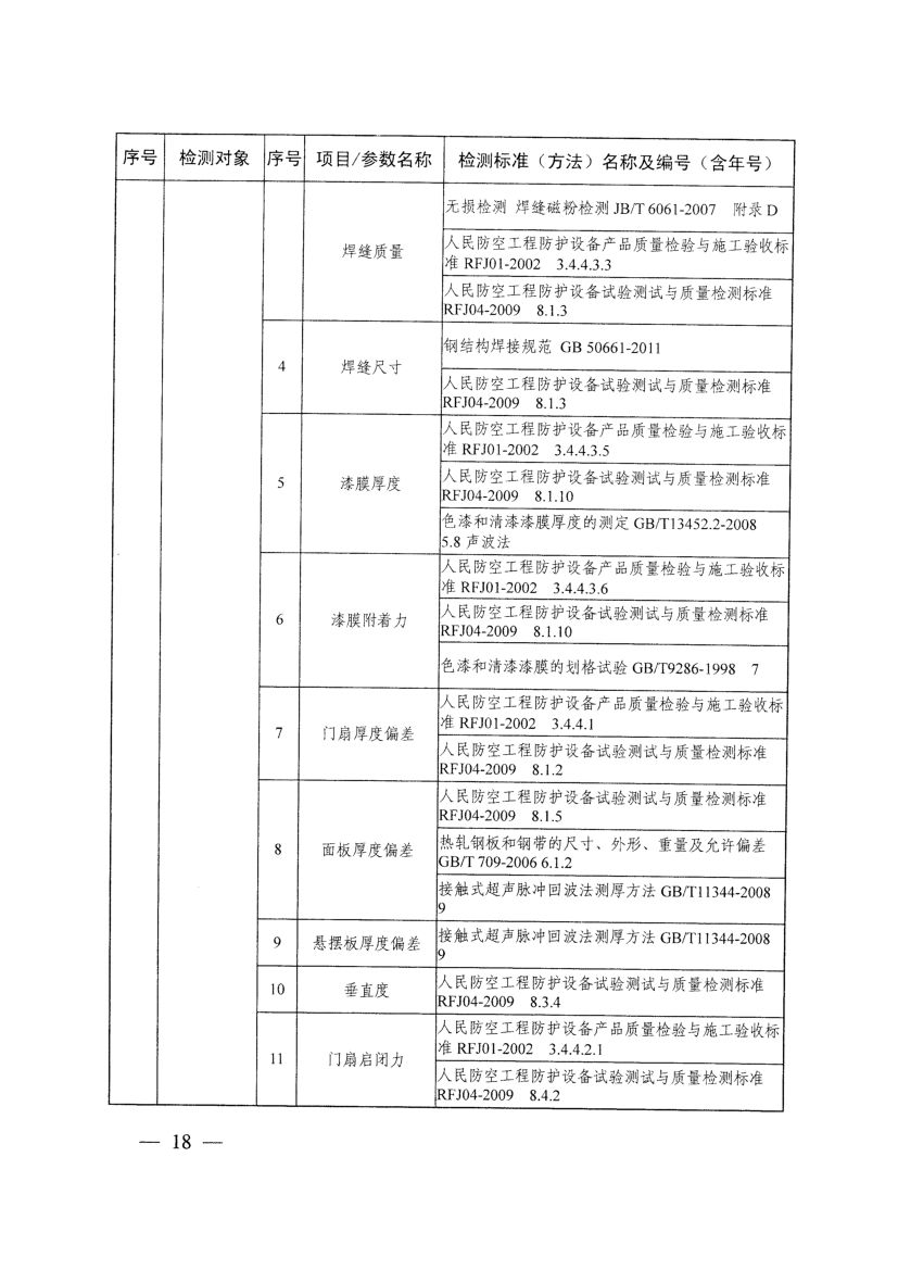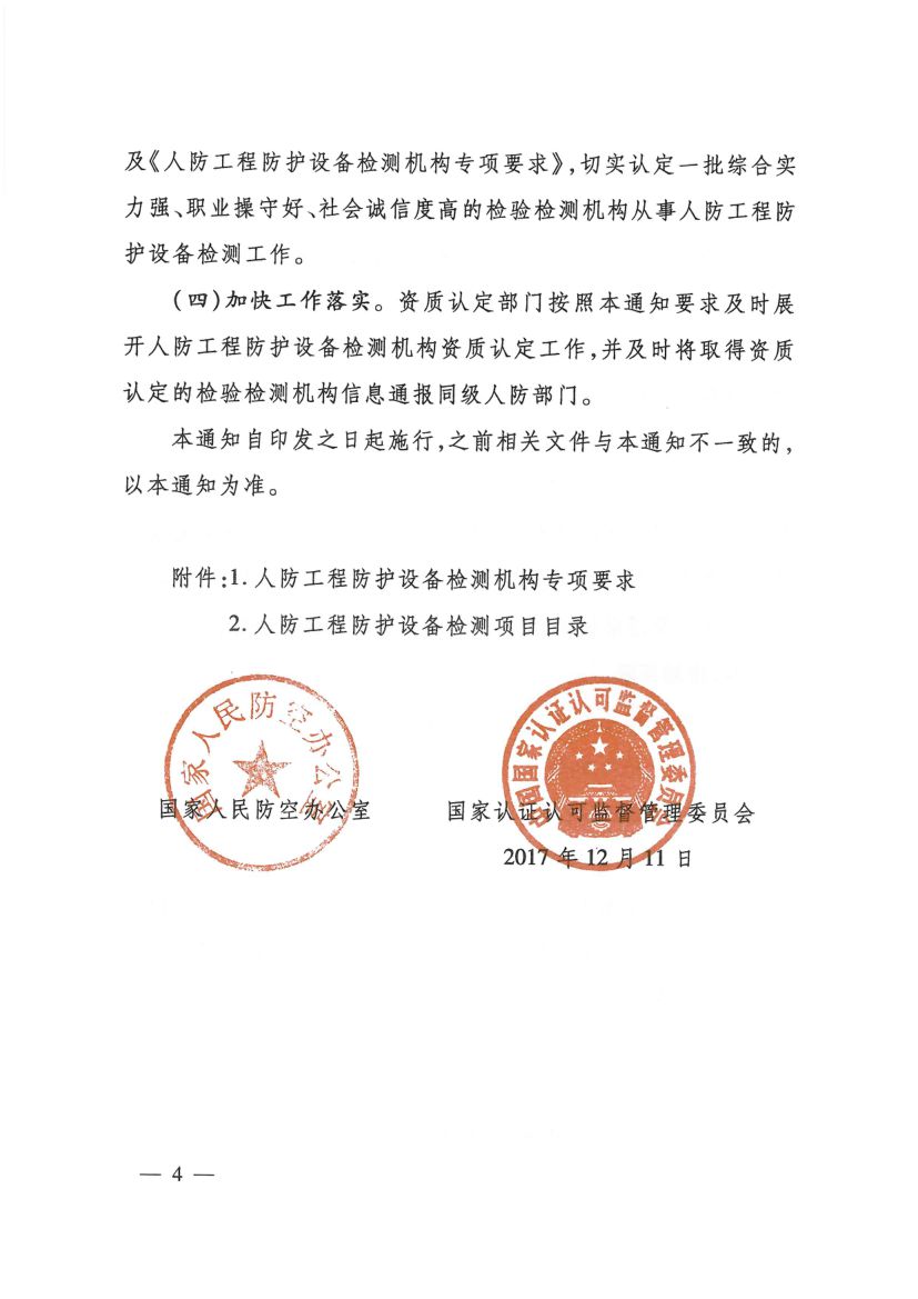 《人防工程防護設備檢測機構專項要求》(國人防〔2017〕271號)