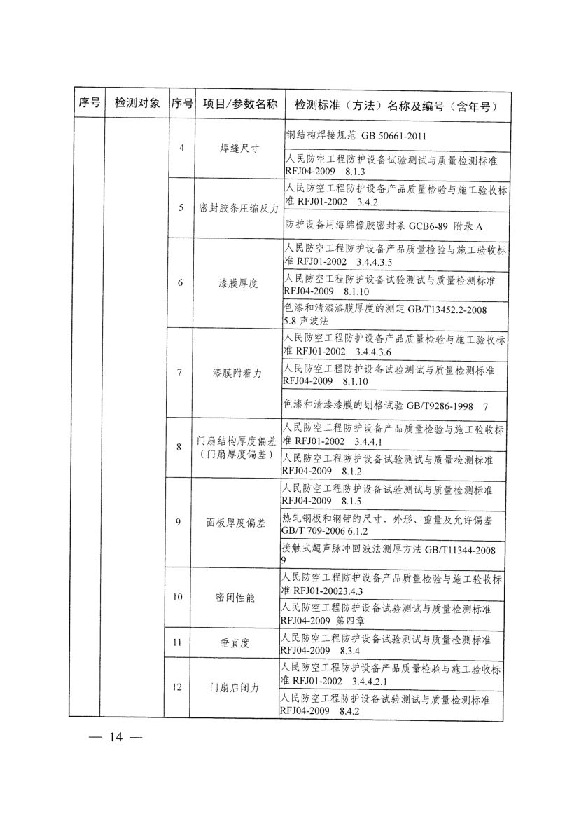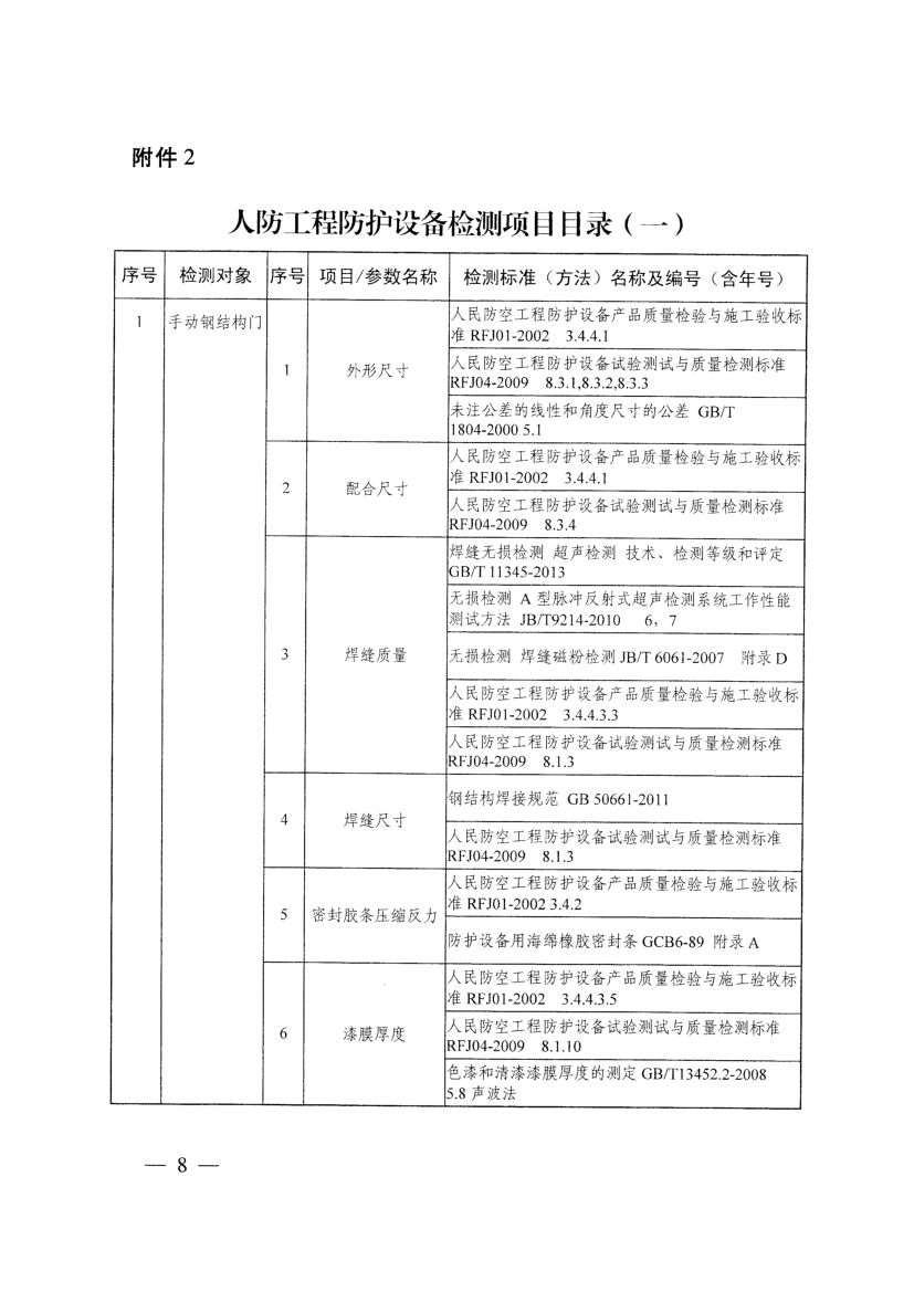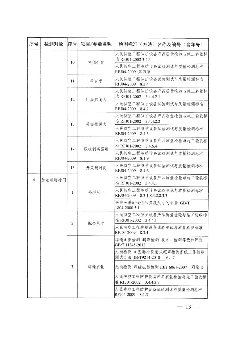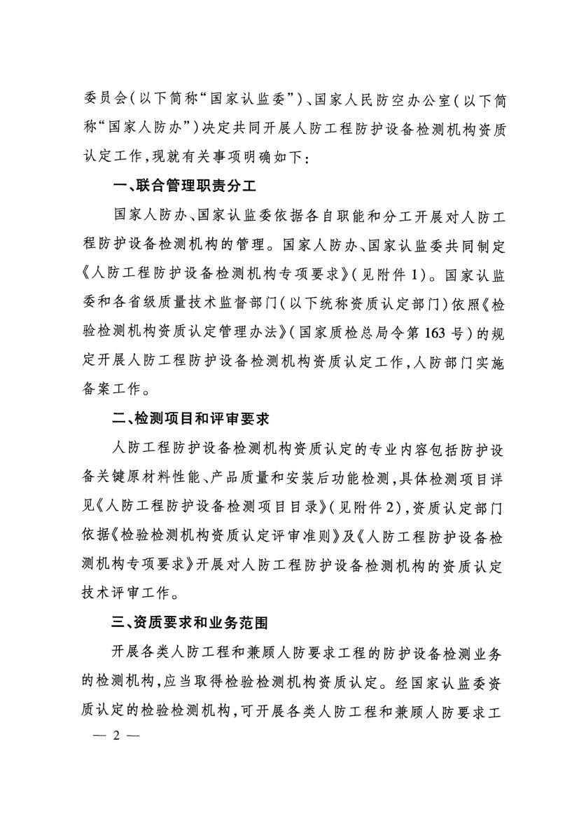 《人防工程防護設備檢測機構專項要求》(國人防〔2017〕271號)
