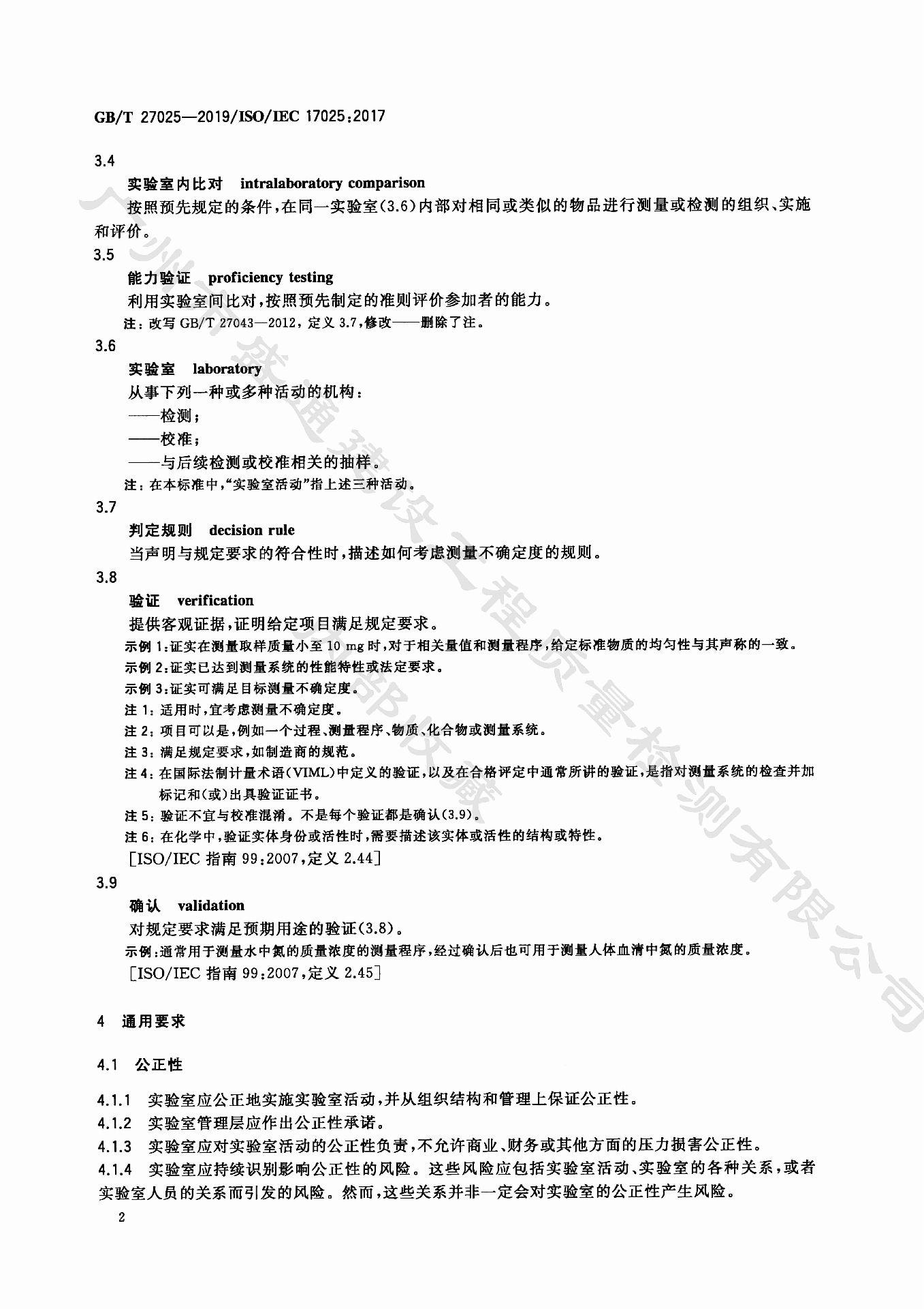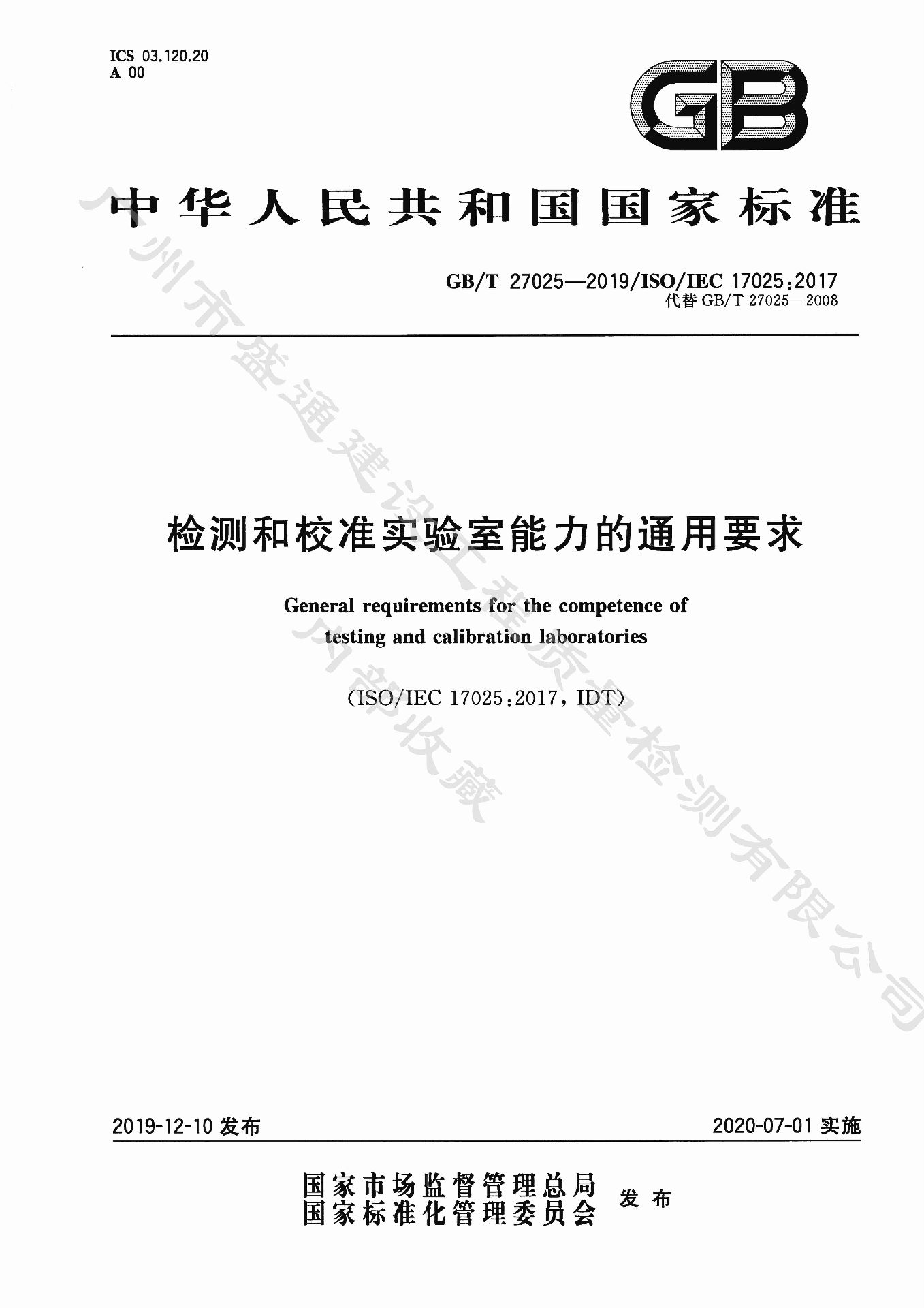《檢測和校準實驗室能力的通用要求》GB_T 27025-2019
