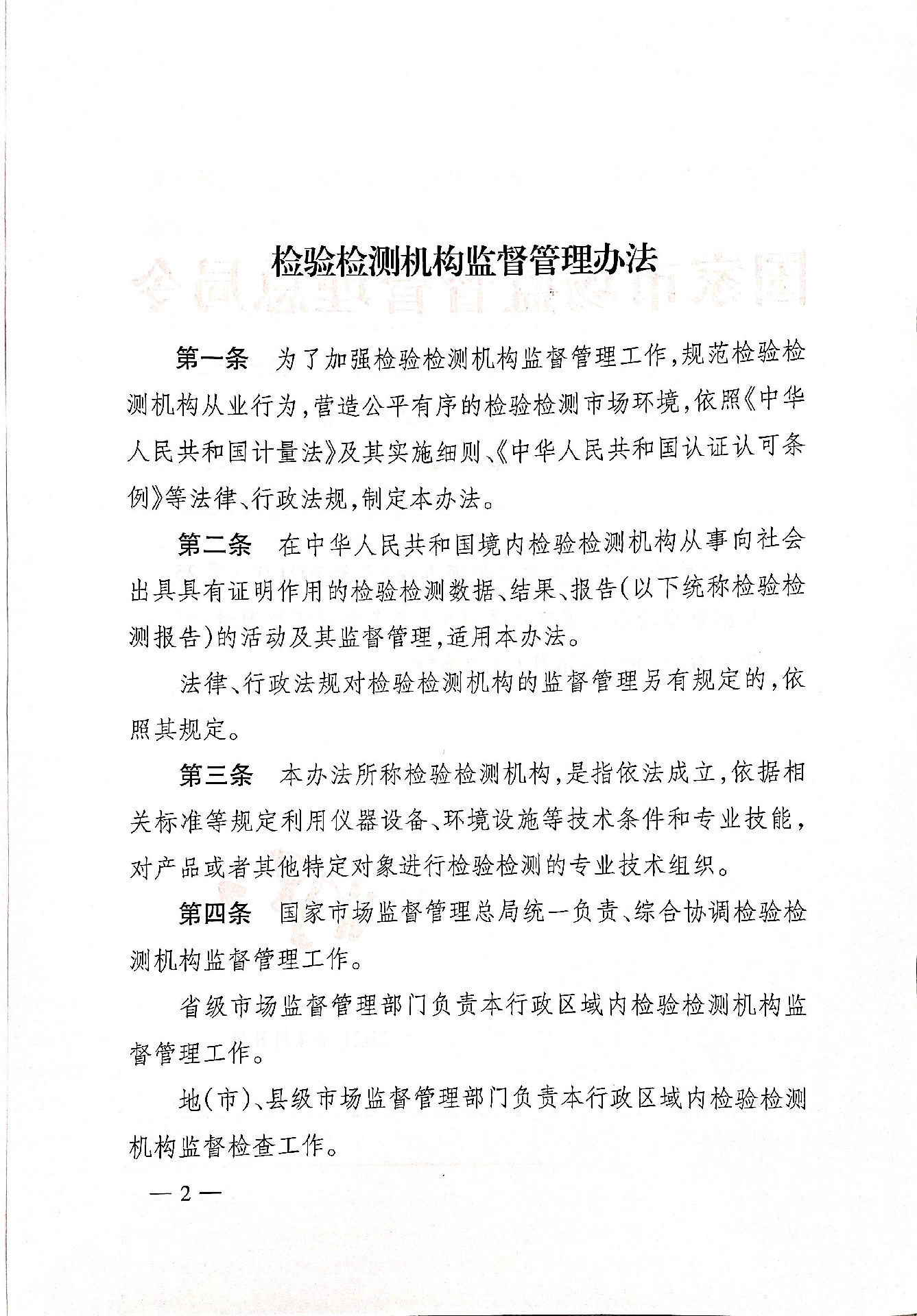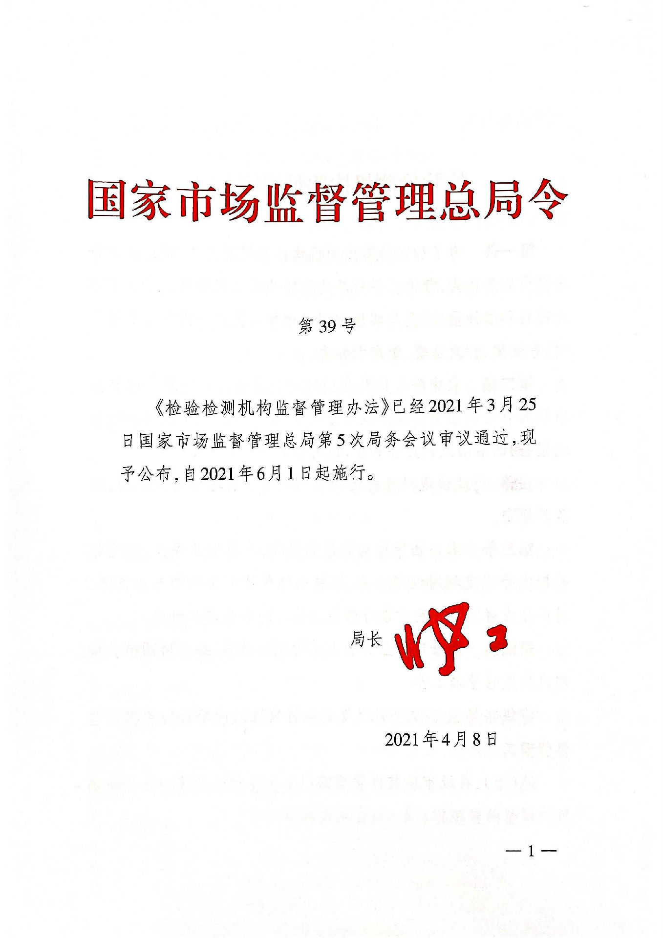 《檢驗檢測機構監督管理辦法》國家市場監督管理總局令第39號
