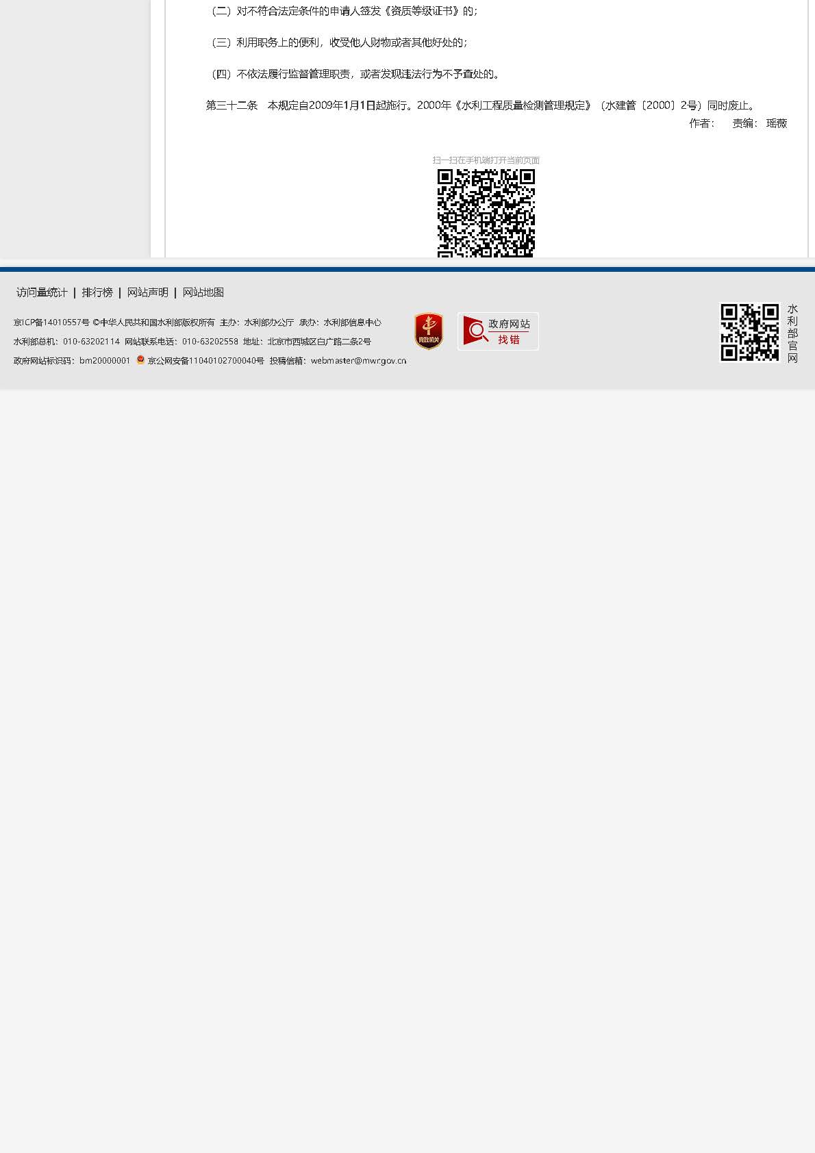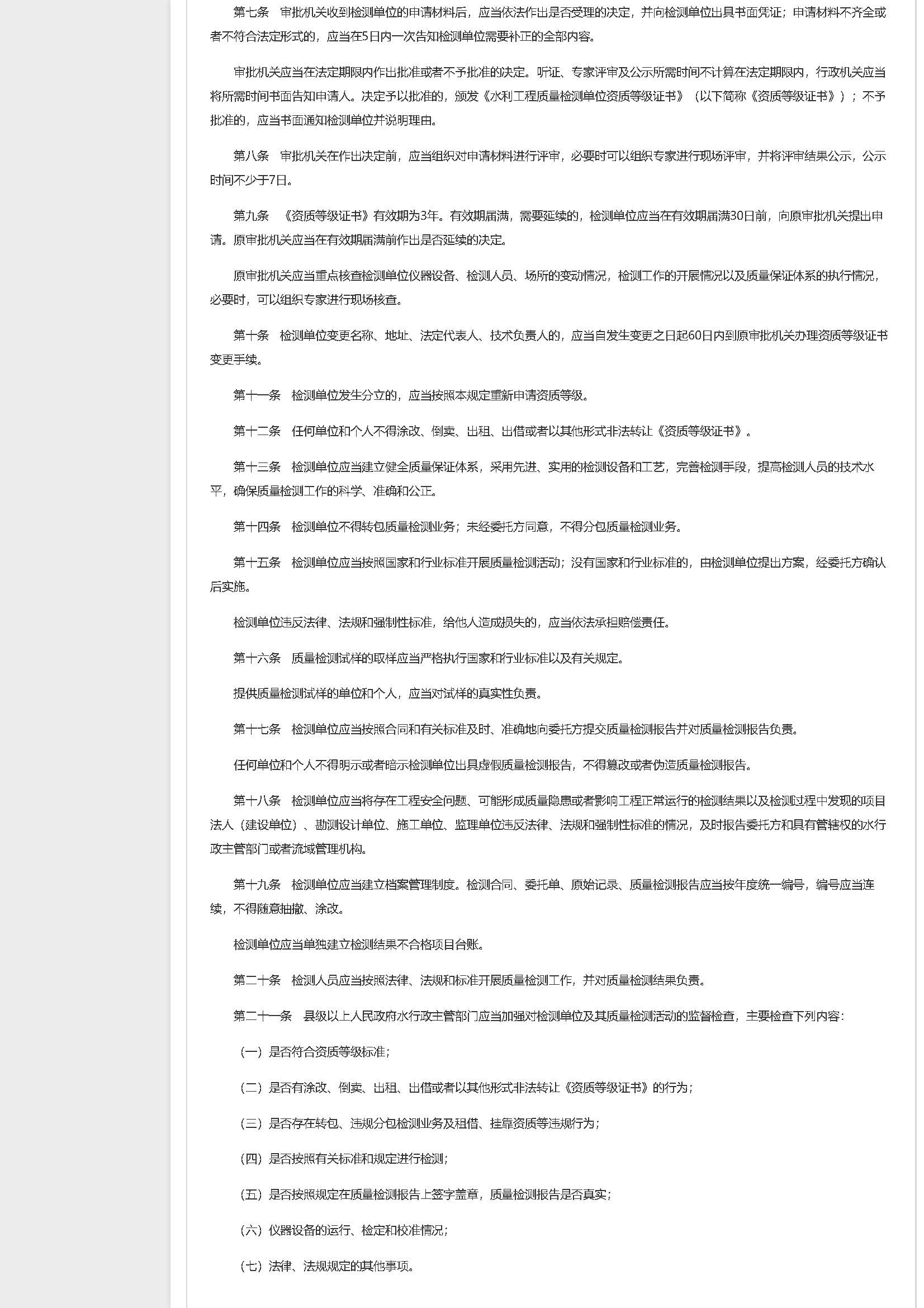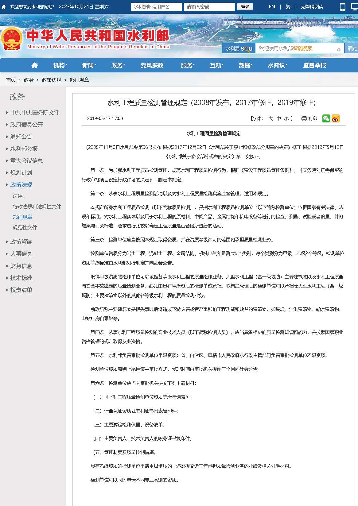 《水利工程質量檢測管理規定(2008年發布,2017年修正,2019年修正)》水利部令2008年第36號
