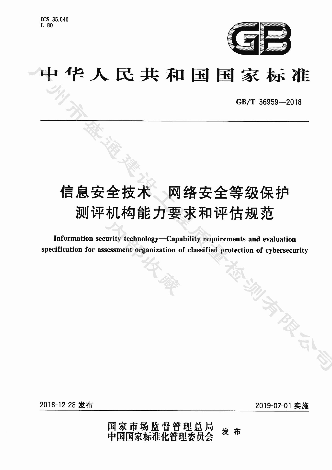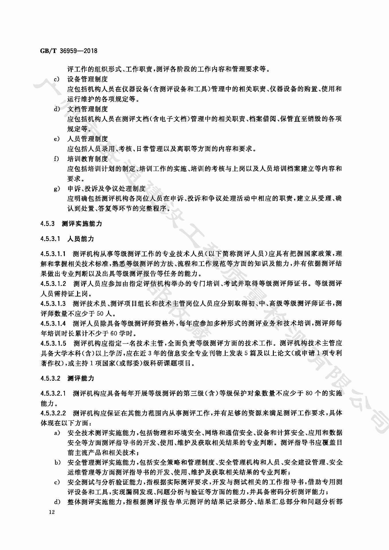 《信息安全技術 網絡安全等級保護測評機構能力要求和評估規范》GB_T 36959-2018