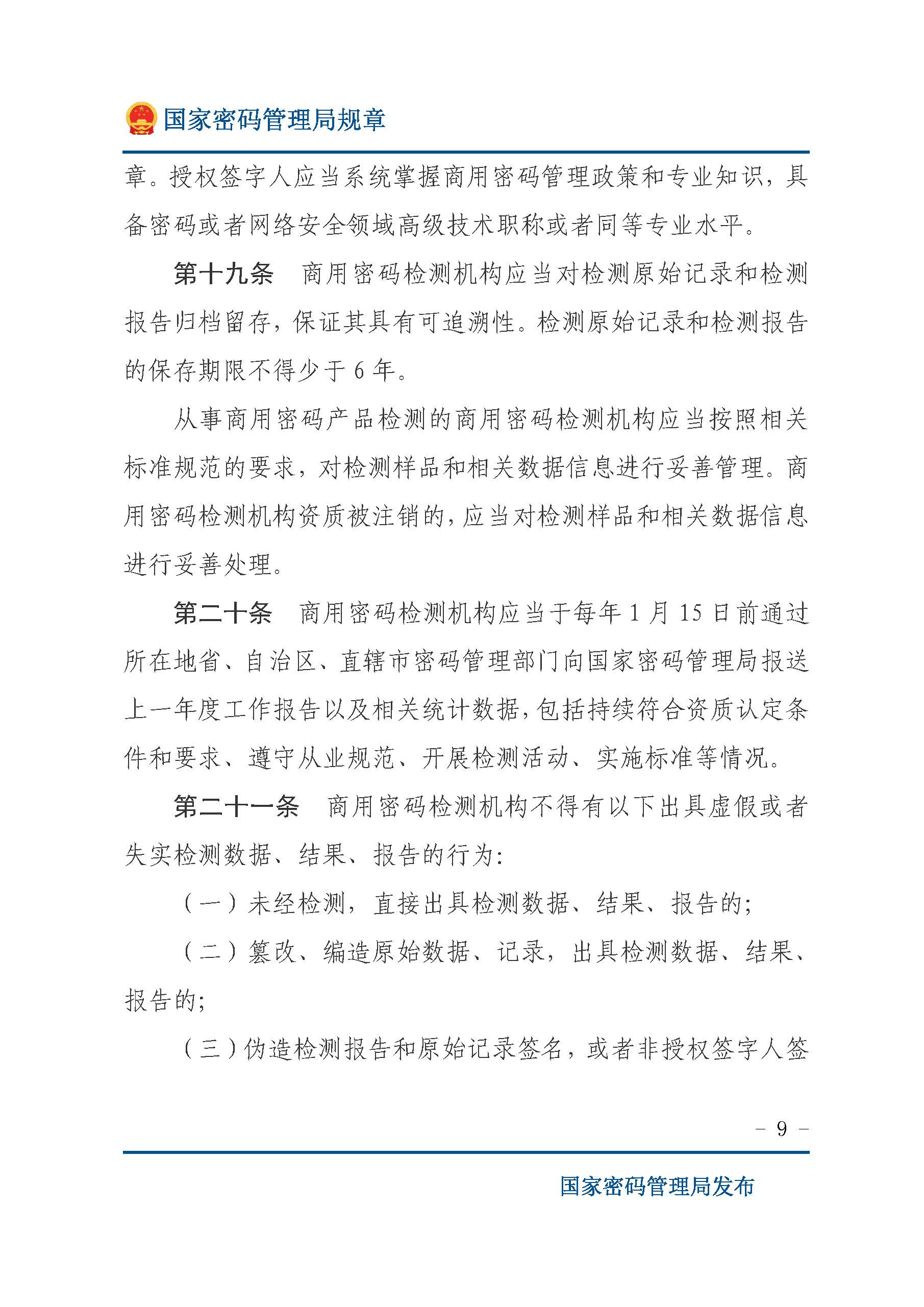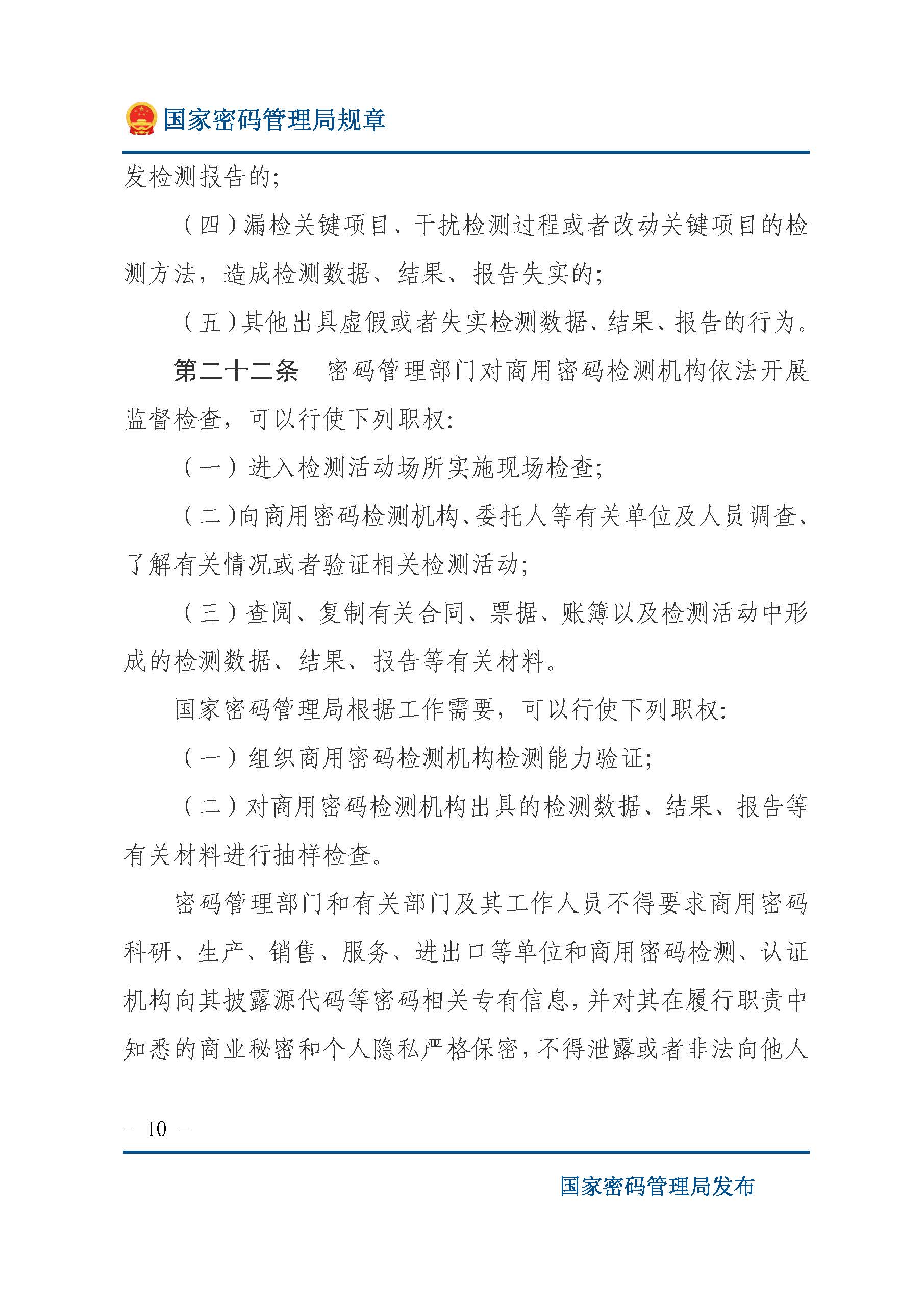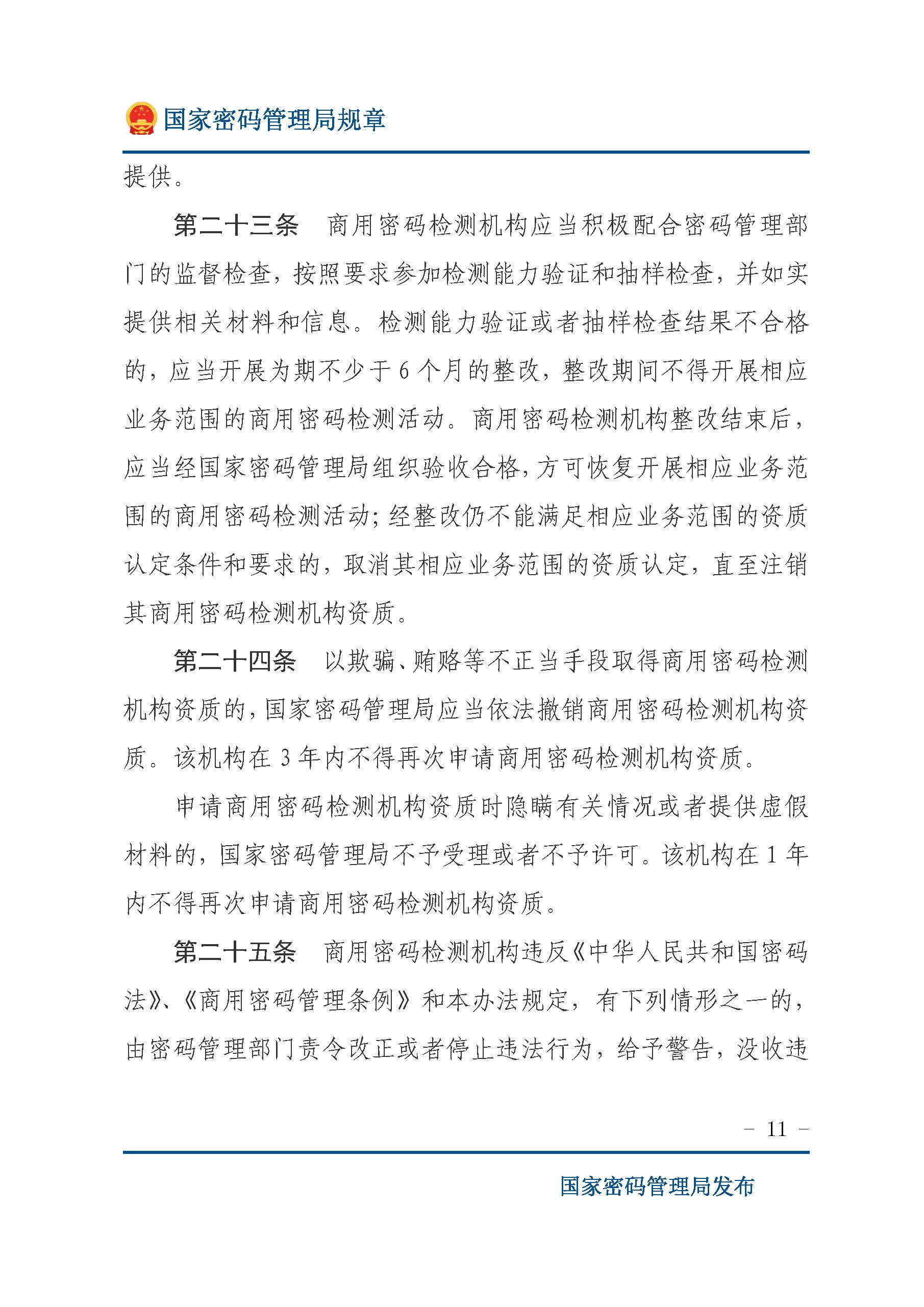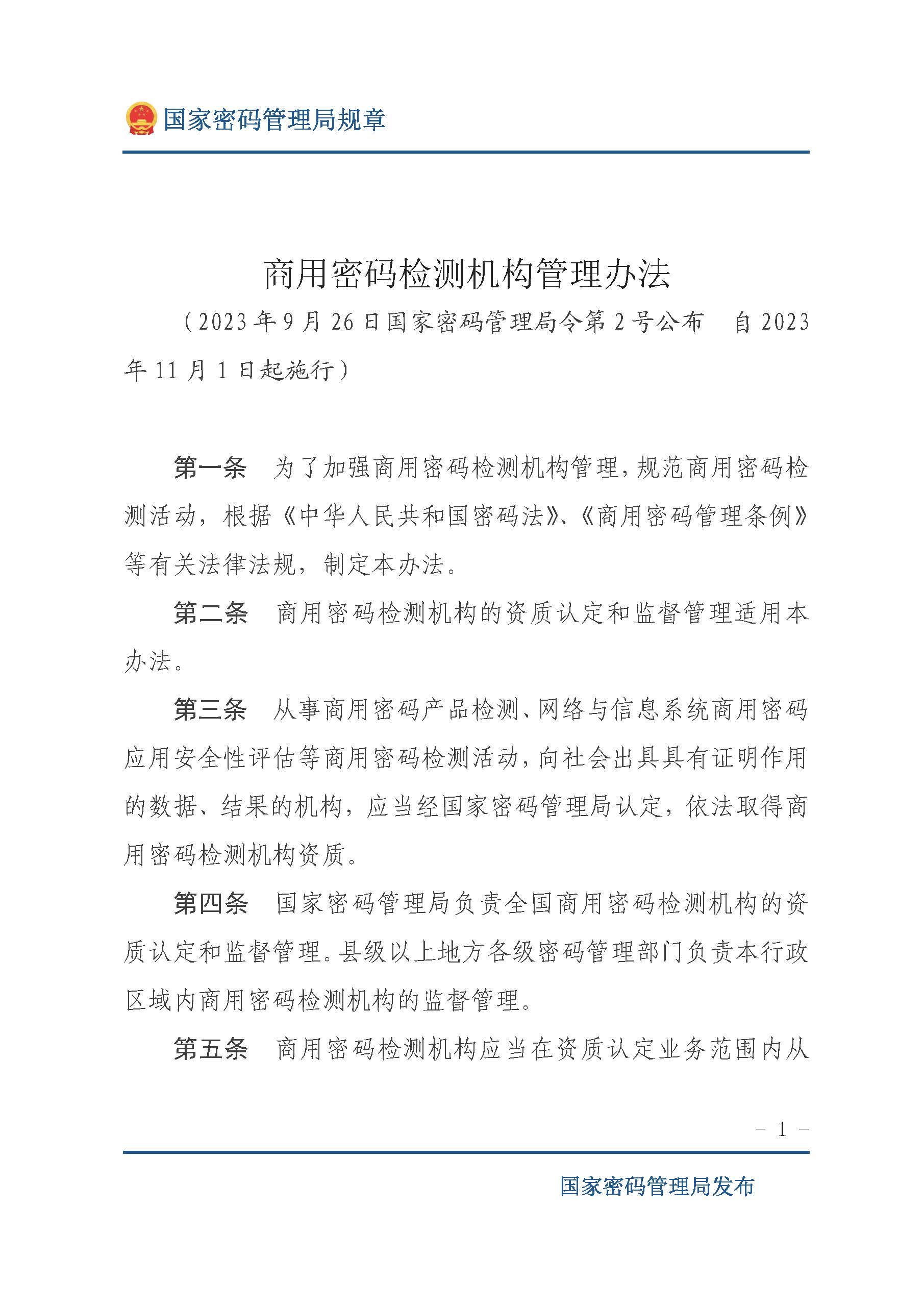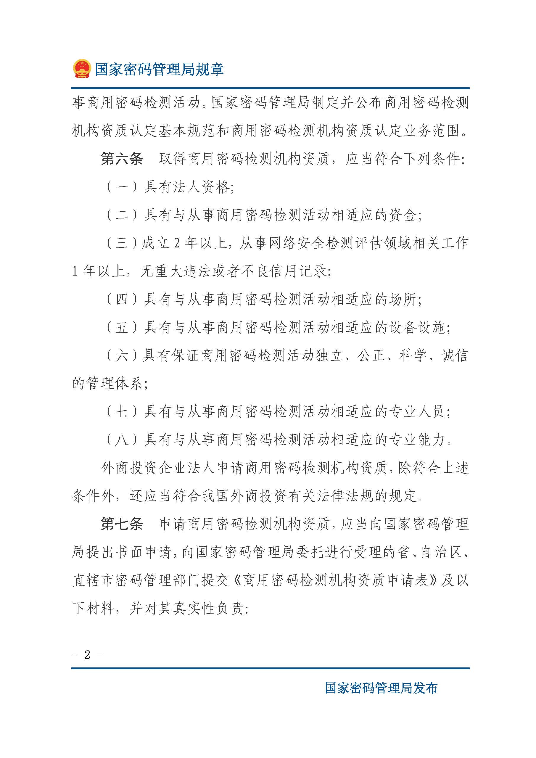 《商用密碼檢測機構管理辦法》國家密碼管理局令第2號