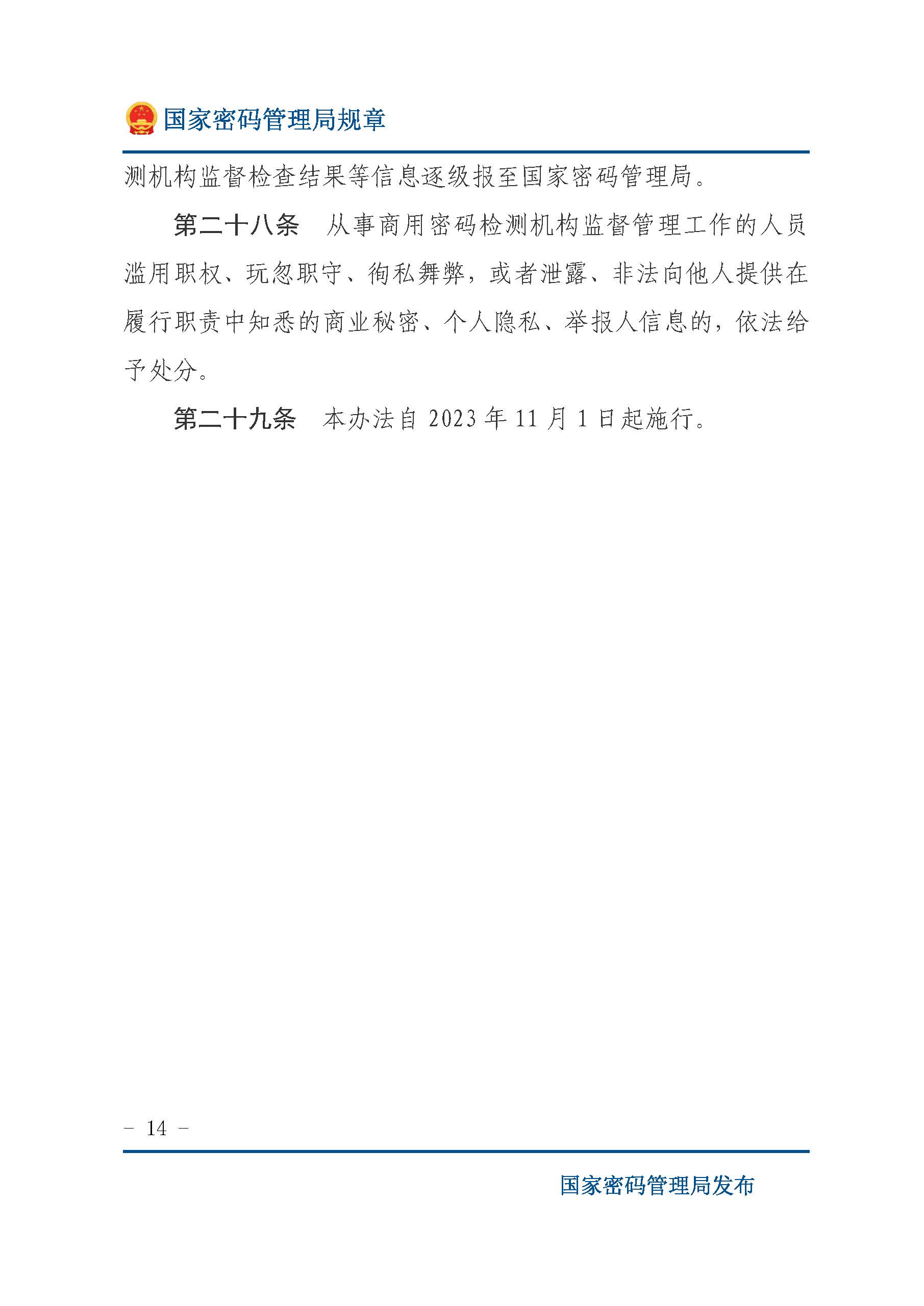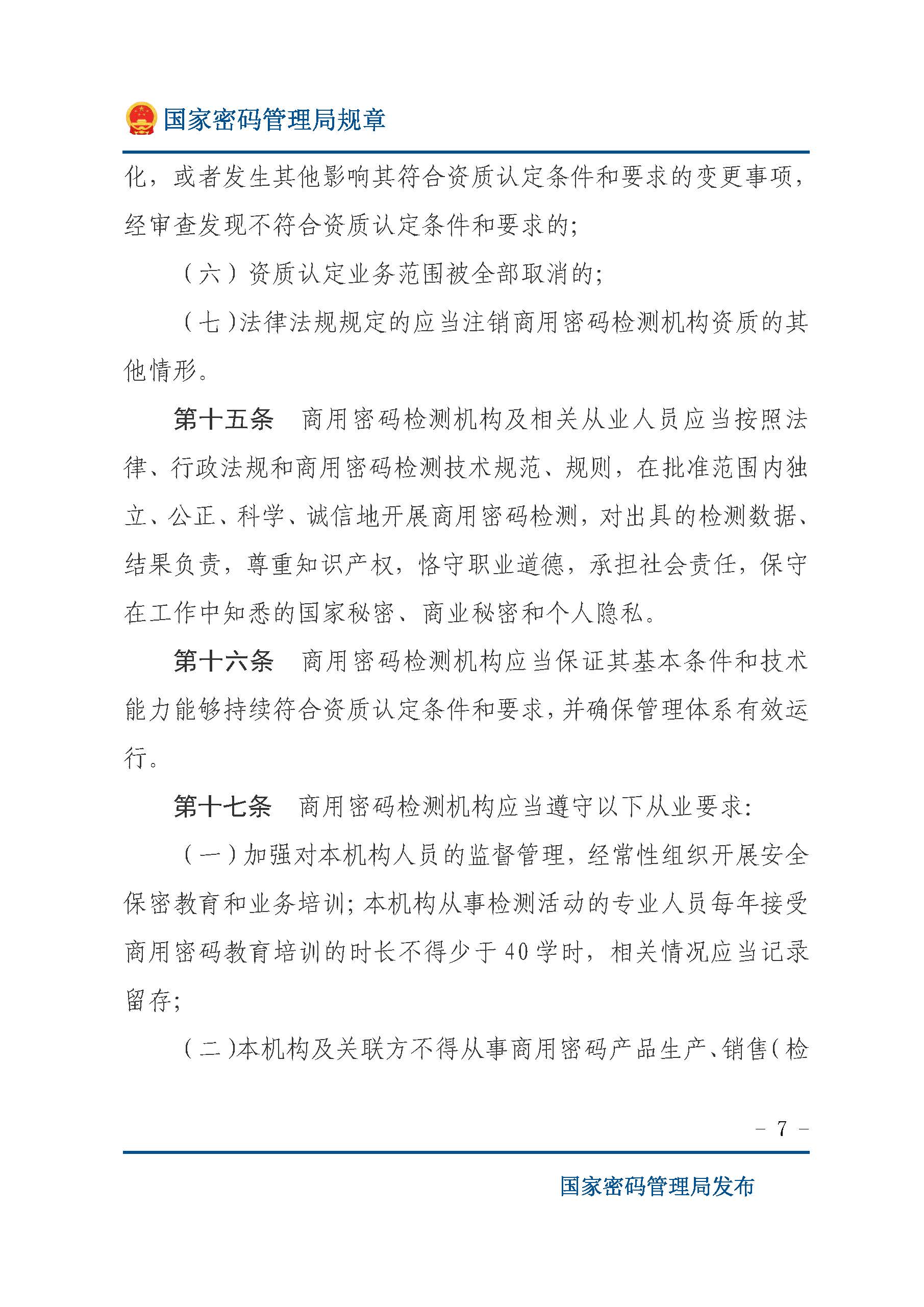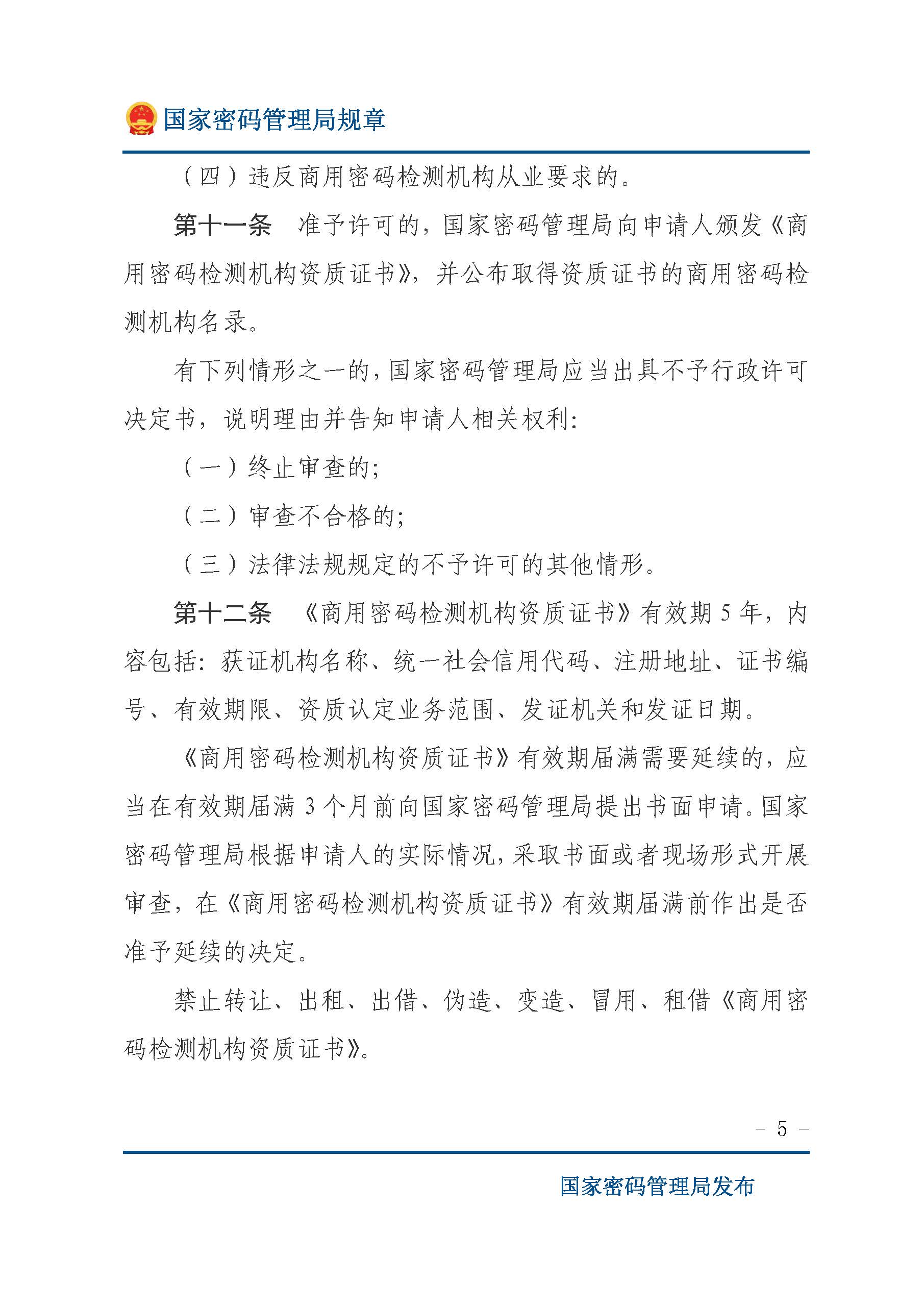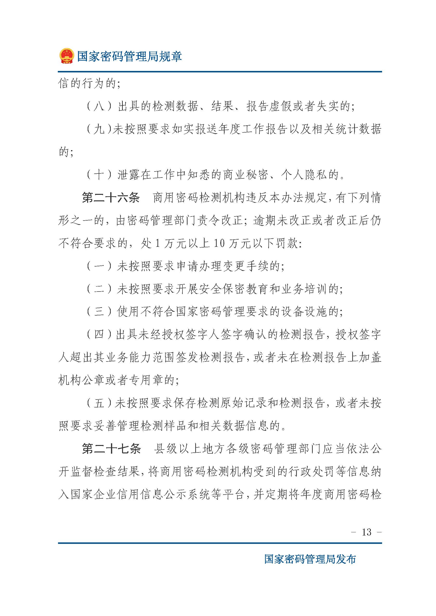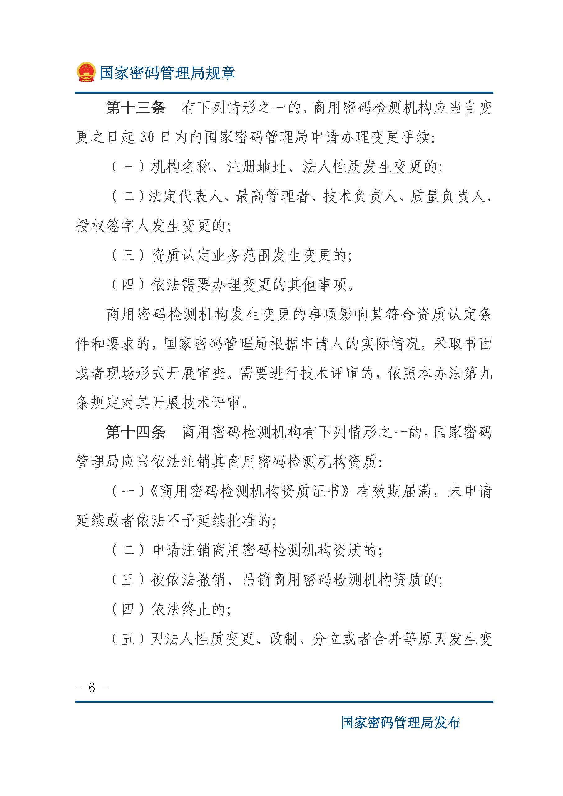 《商用密碼檢測機構管理辦法》國家密碼管理局令第2號
